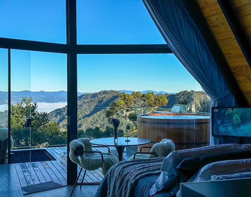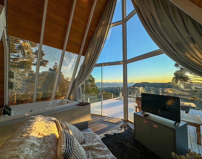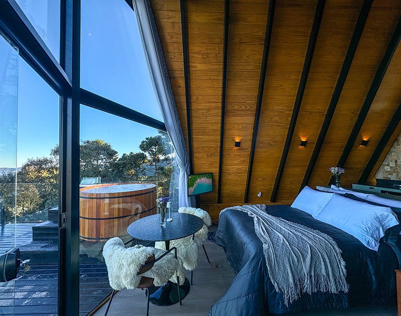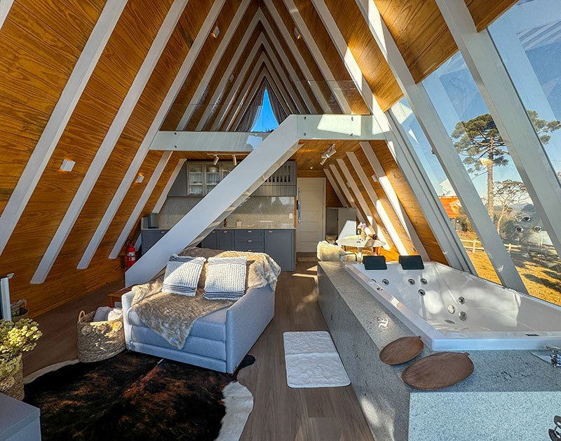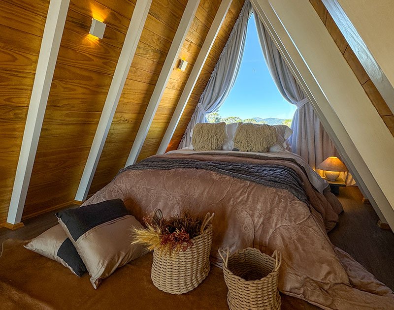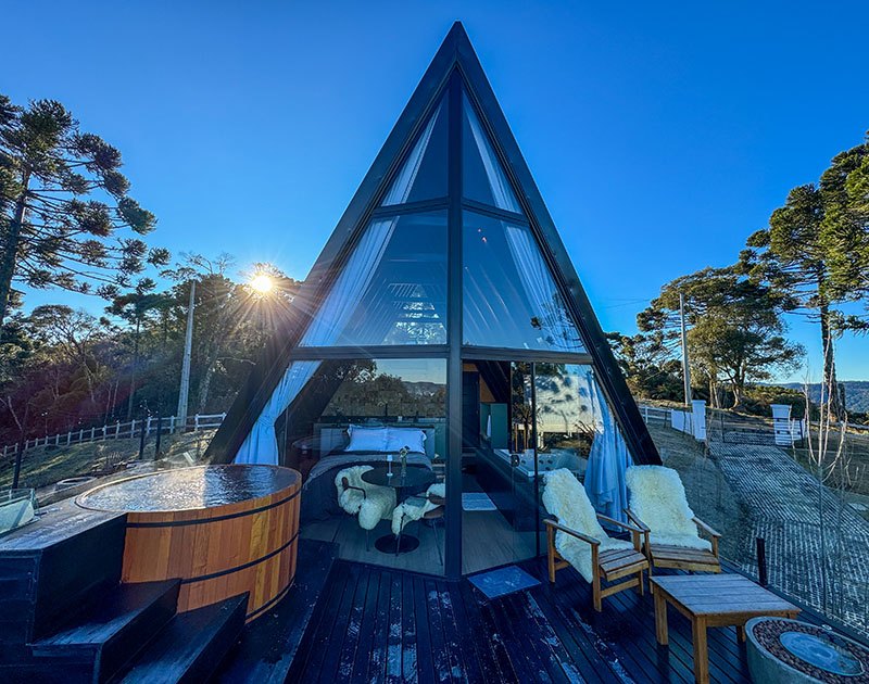 Existe um lugar onde o silêncio não é vazio, é presença. Onde o frio da serra convida ao calor de uma lareira acesa. Onde o agora é tudo o que importa. A 1.430 metros de altitude, cercado por araucárias e com vista ampla para as montanhas, o Alto de Urubici é mais do que um refúgio é uma pausa intencional. Nossos chalés A-frame combinam estética e conforto com um propósito claro: oferecer um espaço onde o tempo desacelera e a natureza é contemplada. Cada detalhe foi pensado para você viver o momento presente com elegância, sem pressa, sem excessos.